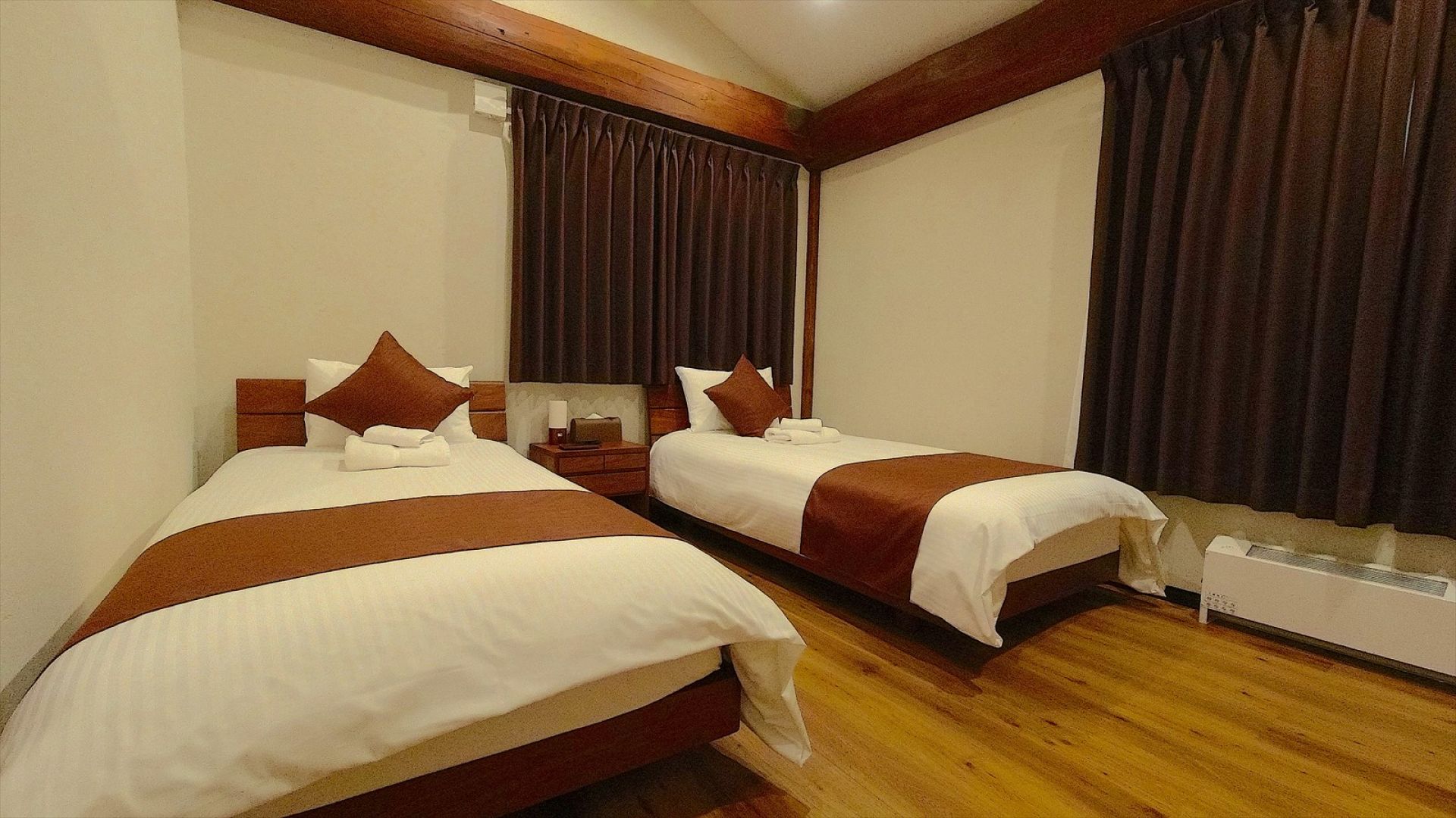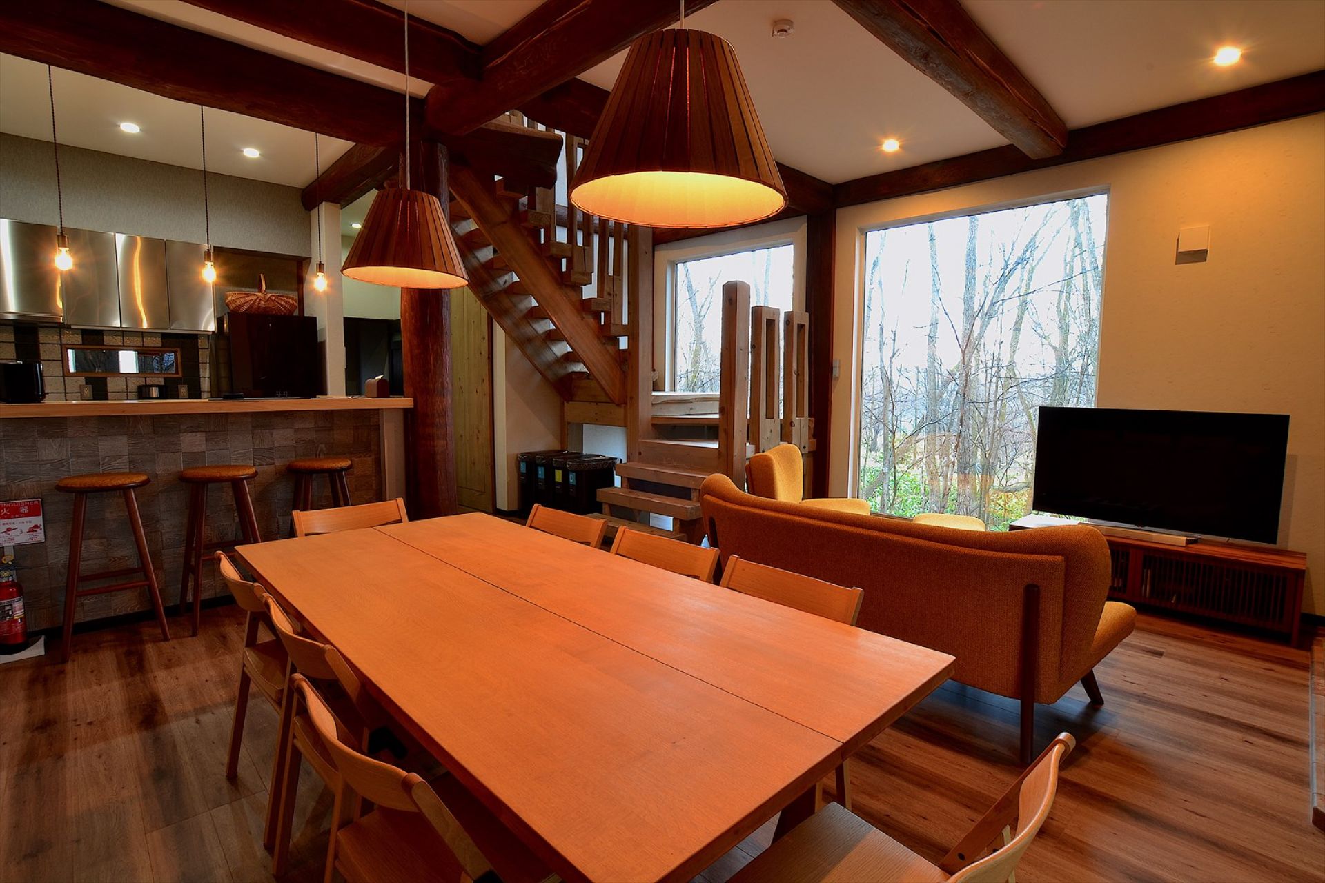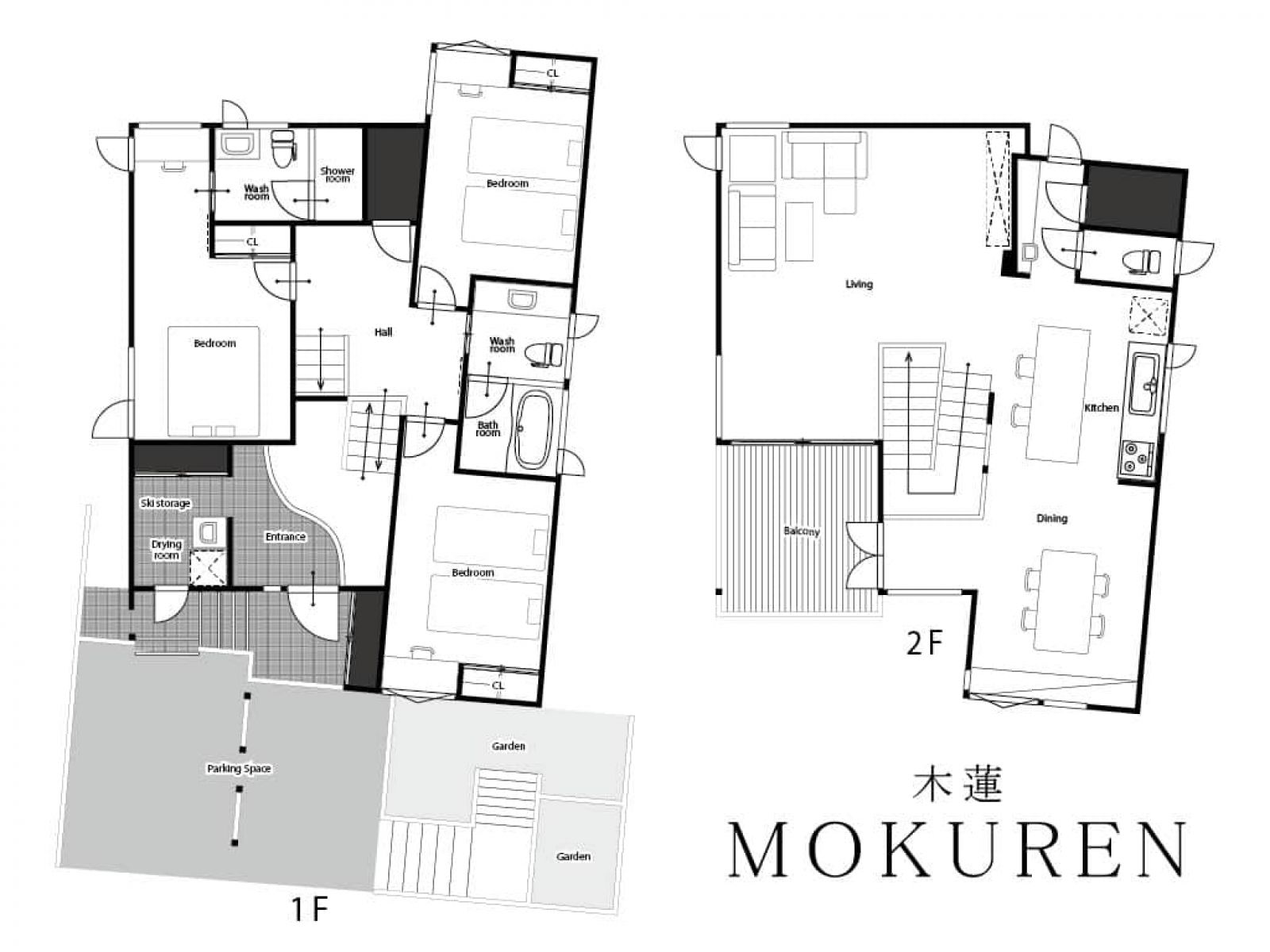 MOKUREN is a newly built in 2020, 2-storey holiday comfortable rental home. The property is located within a few min driving ranges to all the necessities for your holiday, such as restaurants, cafes, ski hire shop, ski school, supermarkets, convenience stores, ski resorts, also walking distance to Kitanomine Gondola station. The house blends wooden modern Japanese design with western elements, providing a cozy stay with a view of Takachidake Mountain from balcony. The house has the ski storage + laundry area next to the spacious entrance area. The lower floor contains all 3 bedrooms and shared bathroom, the master bedroom is with ensuite bathroom. Another shared toilet is located on the upper floor. The living dining kitchen area is also the upper floor that has views of Tokachidake Mountain and Daisetsuzan Mountain ranges.