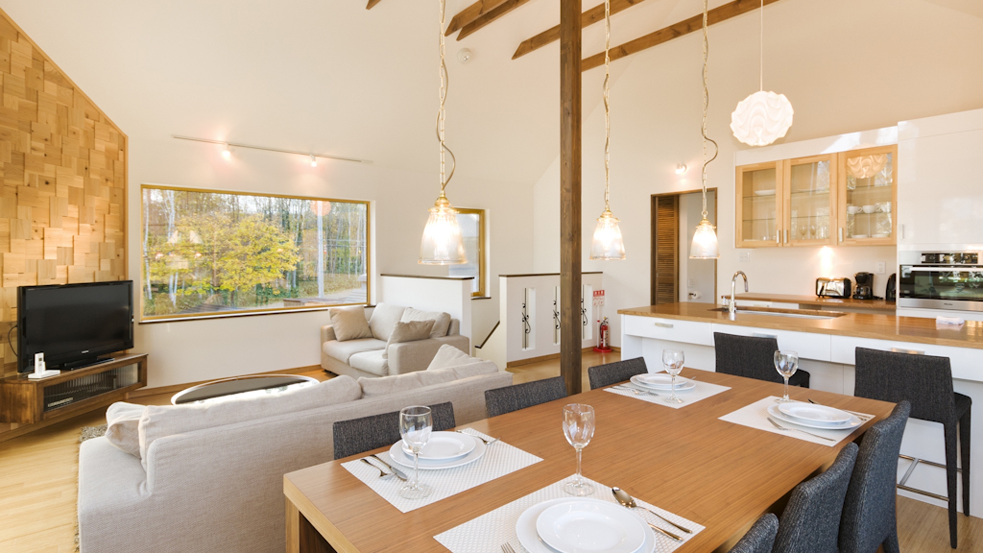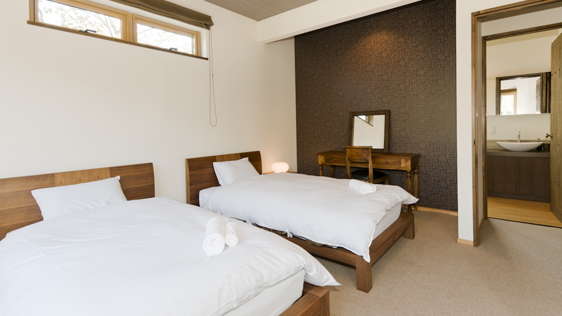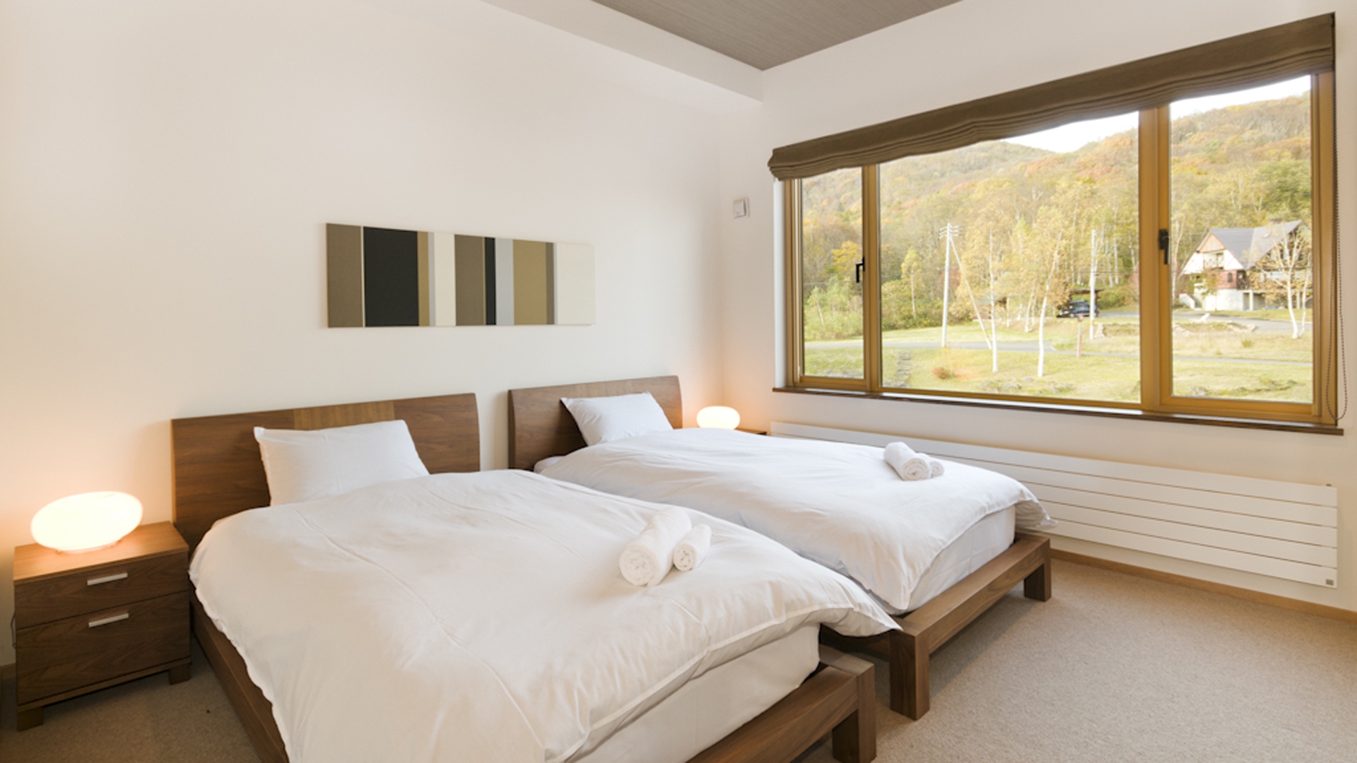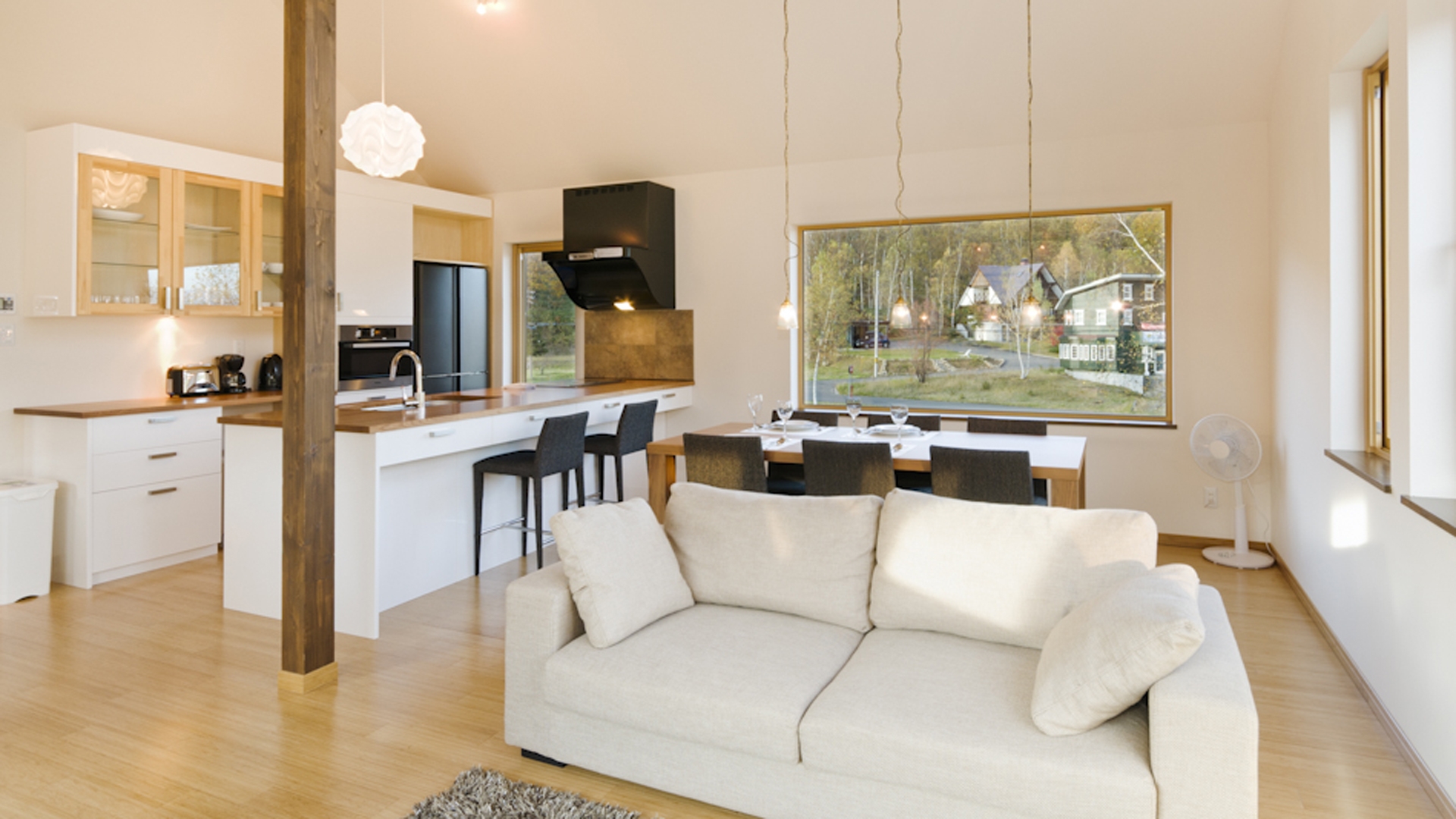 This pair of luxury family townhouses, with a spacious upstairs living area boasting great views, a fully equipped kitchen and two bedrooms downstairs, Hana & Jo are perfect for families. Your day in Hana & Jo can start with a coffee from the very popular Graubünden café, which is right next door. Then jump on the free shuttle bus stopping only meters from the property, and head to either Hirafu or Hanazono resorts. After an exhilarating day chasing powder or racing down fresh groomers, head back to relax your cosy living area, enjoy the great views of Niseko's countryside. Take a stroll into the village to enjoy Niseko's various dining options or enjoy Hokkaido's speciality dish; soup curry at Tsubara Tsubara just meters away from the property.