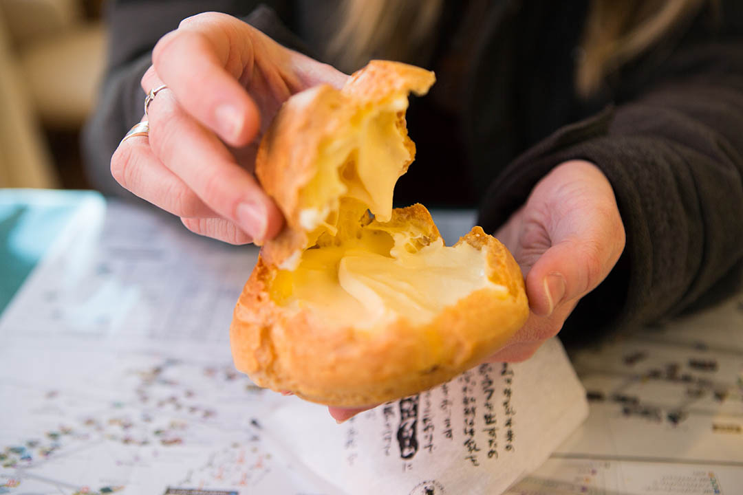 The most popular item on the menu is the signature “Choux Cream”; a crispy sweetbread shell filled with creamy vanilla custard. Each Choux Cream is made fresh and filled with just the right amount of cream. These can be a bit tricky to eat without making a mess – but that’s all part of the fun!